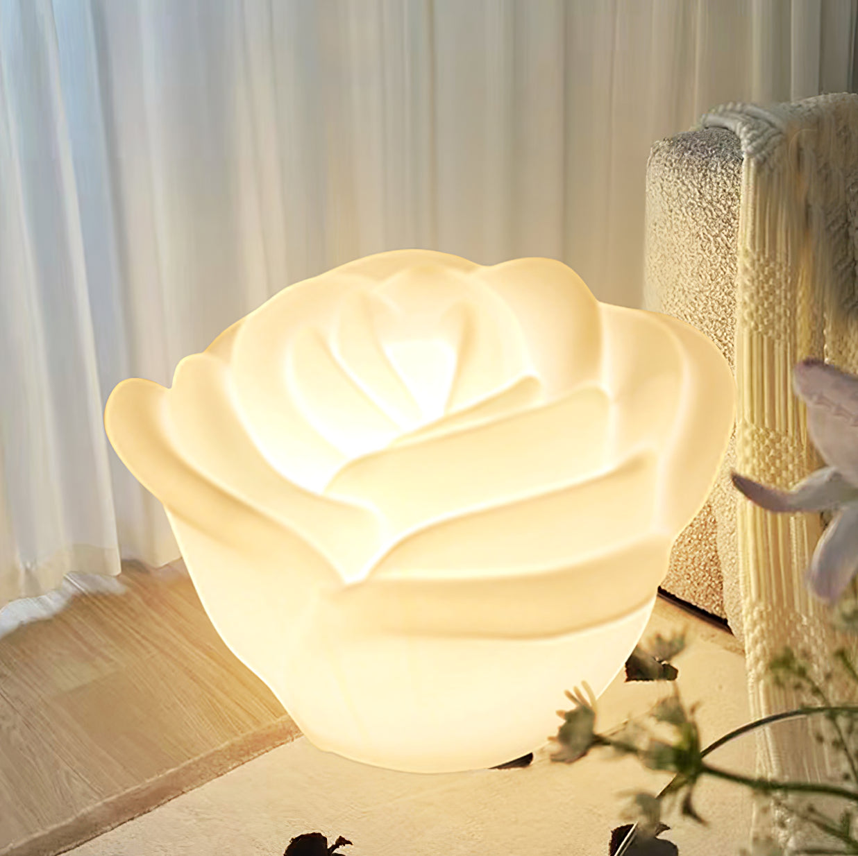 Tämä valkoisen ruusun muotoinen LED-pöytävalaisin on valmistettu pyöreällä muovauksella maksimaalisella kestävyydellä. Sen pudotus- ja paineenkestävyys varmistaa, että se kestää raskaita kuormia, kun taas sen hieno ja kiiltävä rakenne lisää ylellistä tunnelmaa kotiisi. Korkea valonläpäisevyys varmistaa, että tilasi on aina valaistu ja viihtyisä.