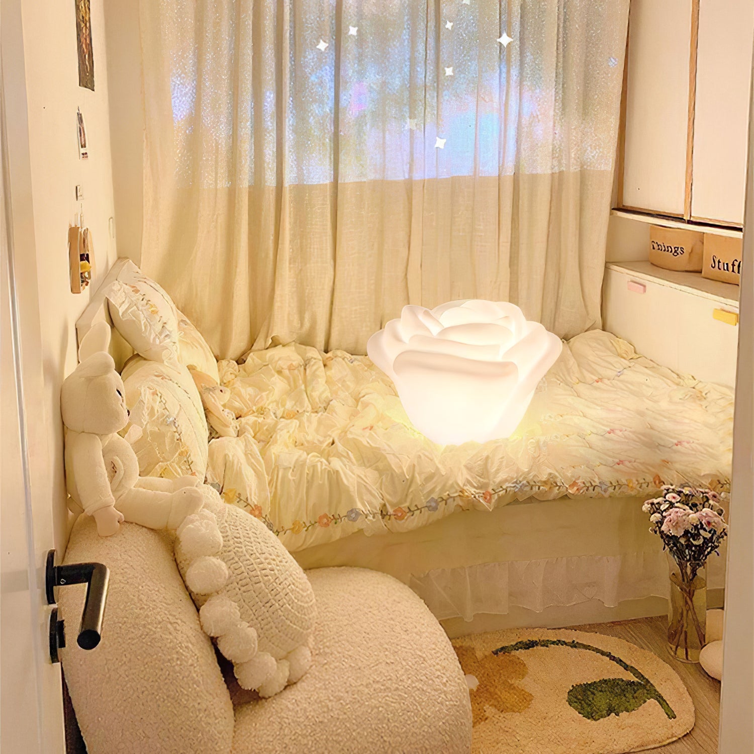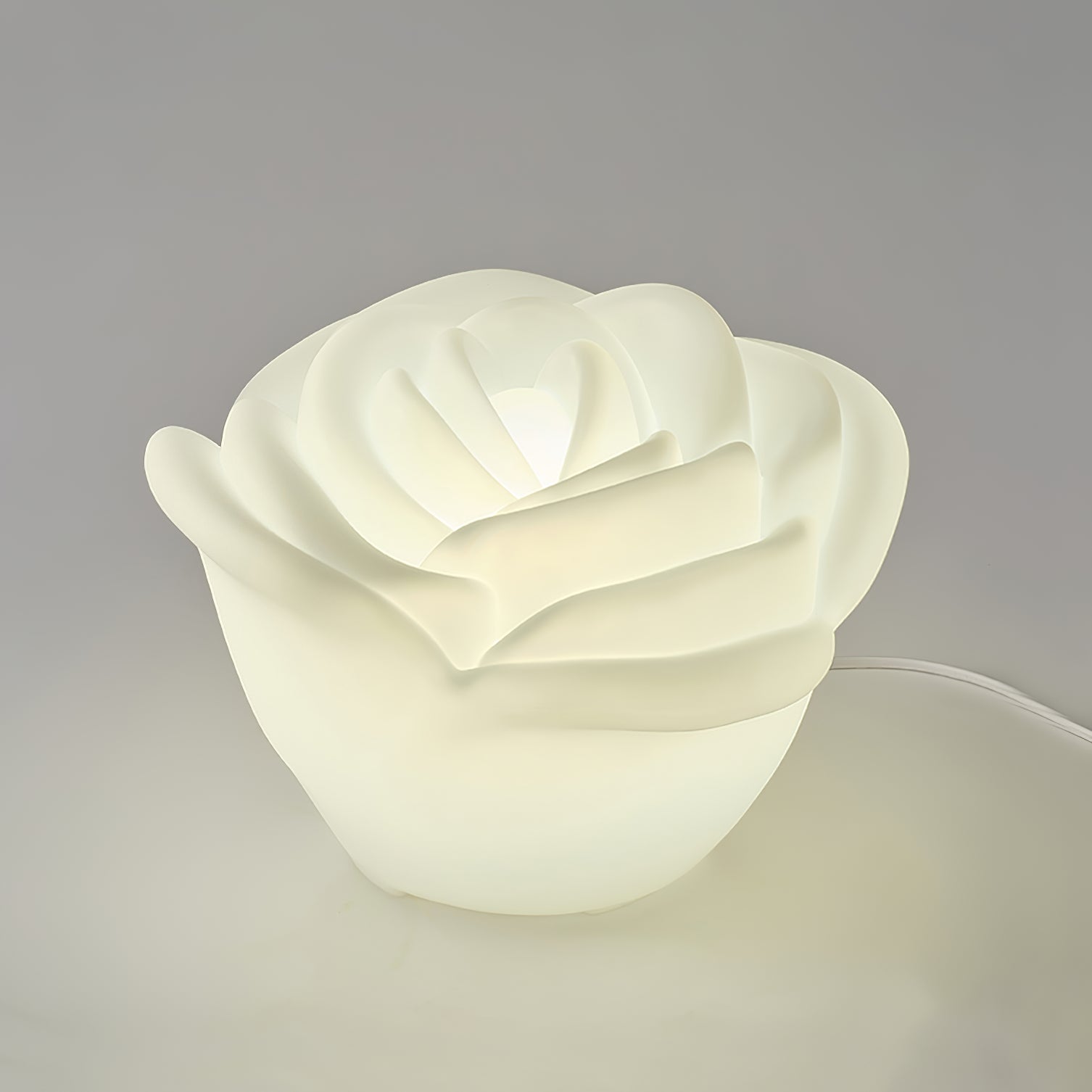 Valkoisen ruusun muotoinen LED-pöytävalaisin