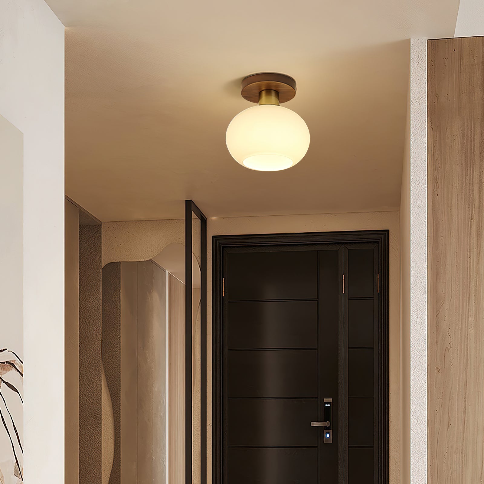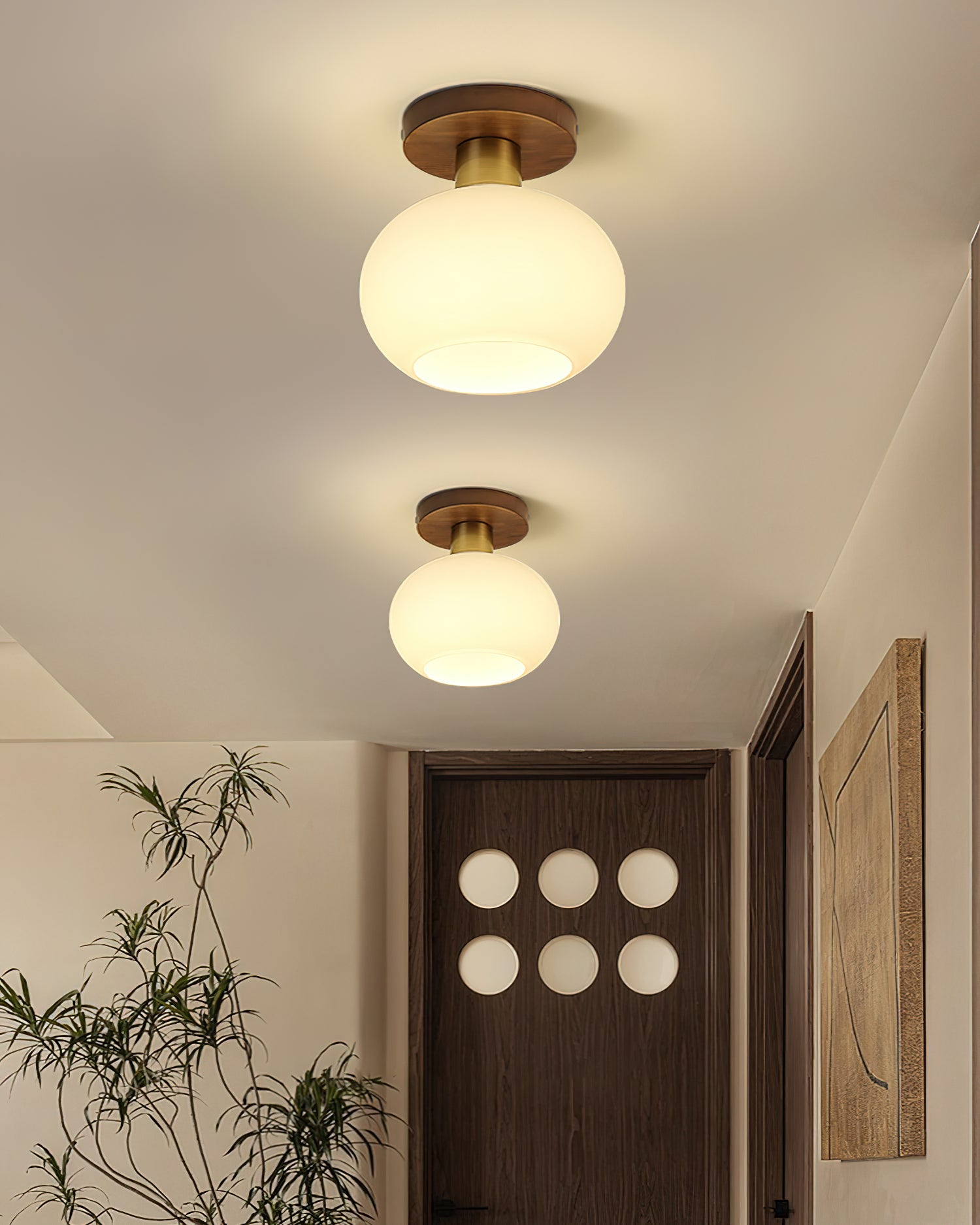 Tämä valkoinen kuorillinen kattovalaisin tuo ajattomalla kauneudellaan ripauksen eleganssia mihin tahansa ympäristöön. Mustasta pähkinästä, kuparista ja opaalilasista valmistettu lamppu tuo pehmeää, kirkasta valoa kotiisi. Anna sen kirkastaa kauneuttasi ja luoda kodikkaan tunnelman söpöllä ja viehättävällä ulkonäöllään.