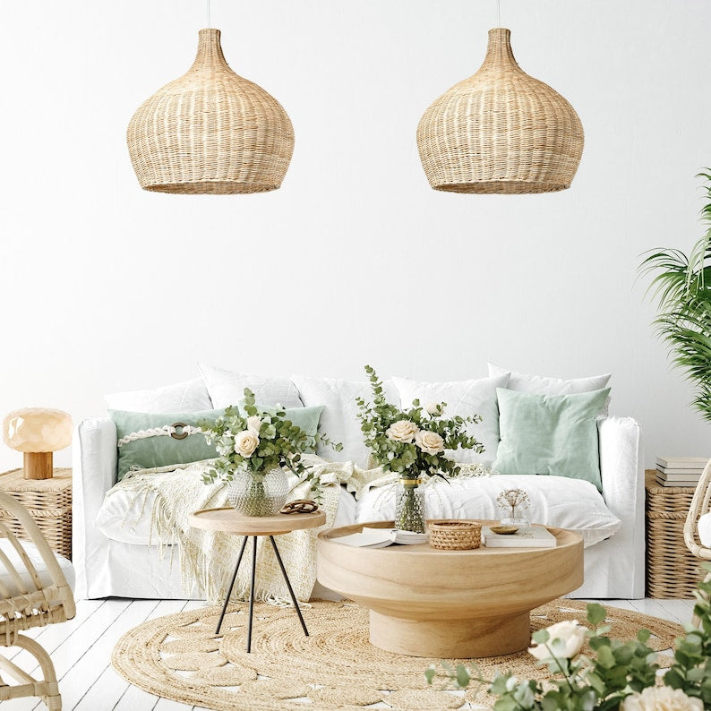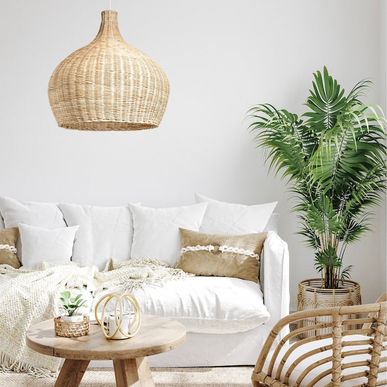 Ainutlaatuinen rottinki-riippuvalaisin 100 %:sti kiinalaisten käsityöläisten valmistama. Se tarjoaa hienostuneen ja ajattoman ilmeen kotisi sisustukseen eri tyyleillä bohosta, perinteisestä rannikkomaisesta, maalaismainen ja nykyaikaiseen. .