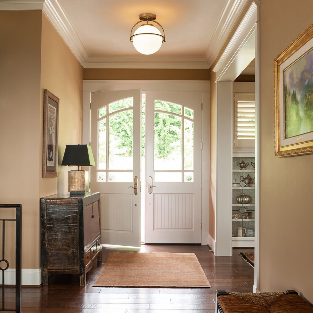 Leveä Opal Glass Globe Messinki 1-Light kattovalaisin