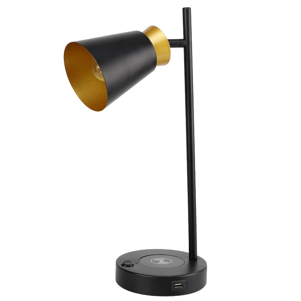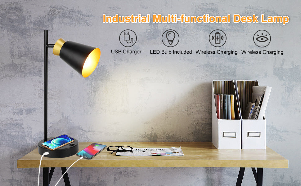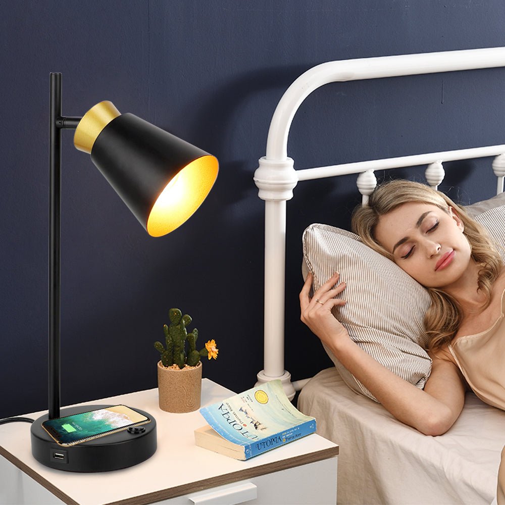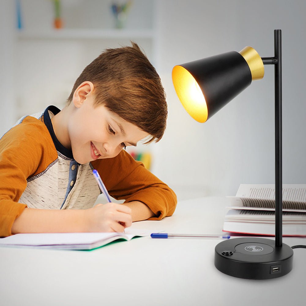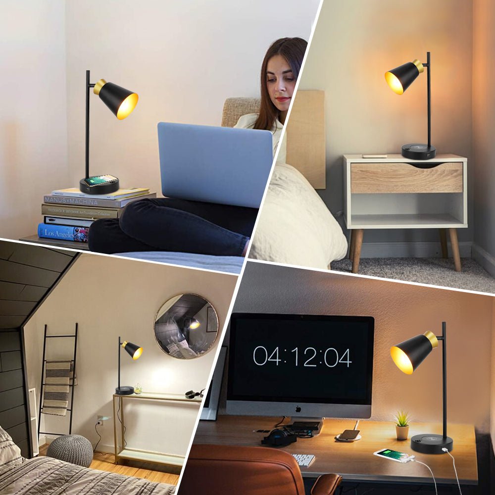 DINGLILIGHTING Yöpöytävalaisin langattomalla laturilla ja USB-latausportilla, säädettävä musta vintage-metallinen pöytävalaisin sängyn viereen, olohuoneeseen ja toimistoon, lamppu mukana, lahjaksi