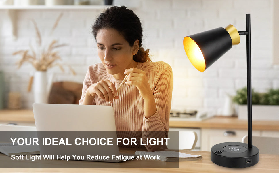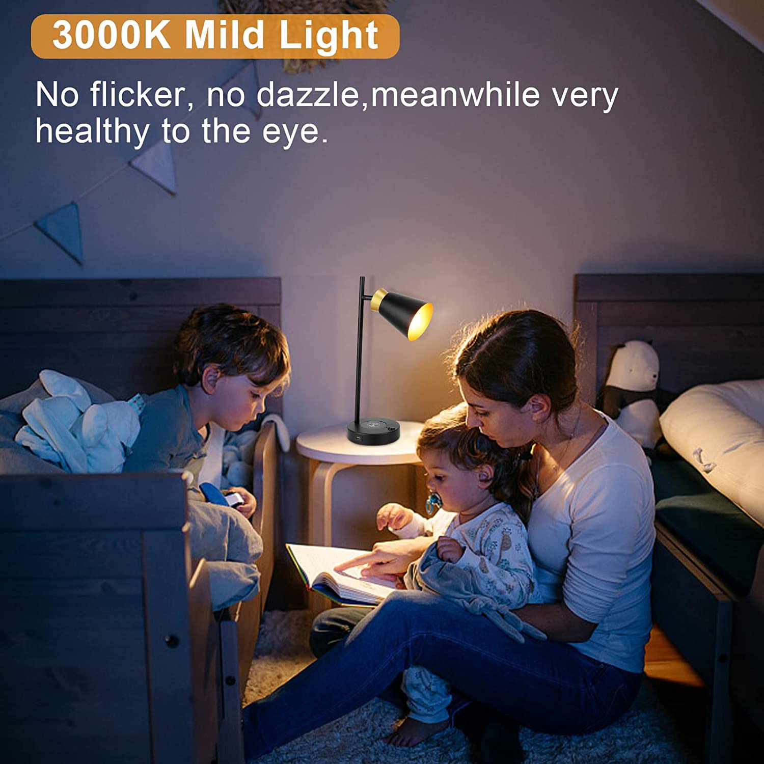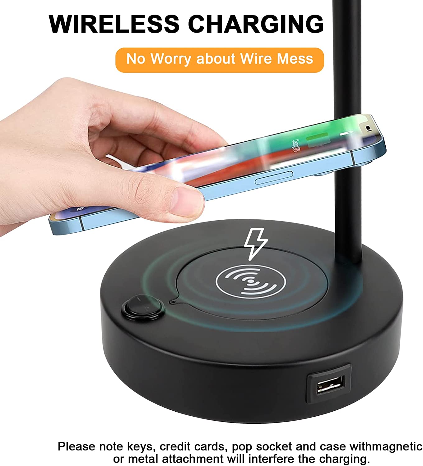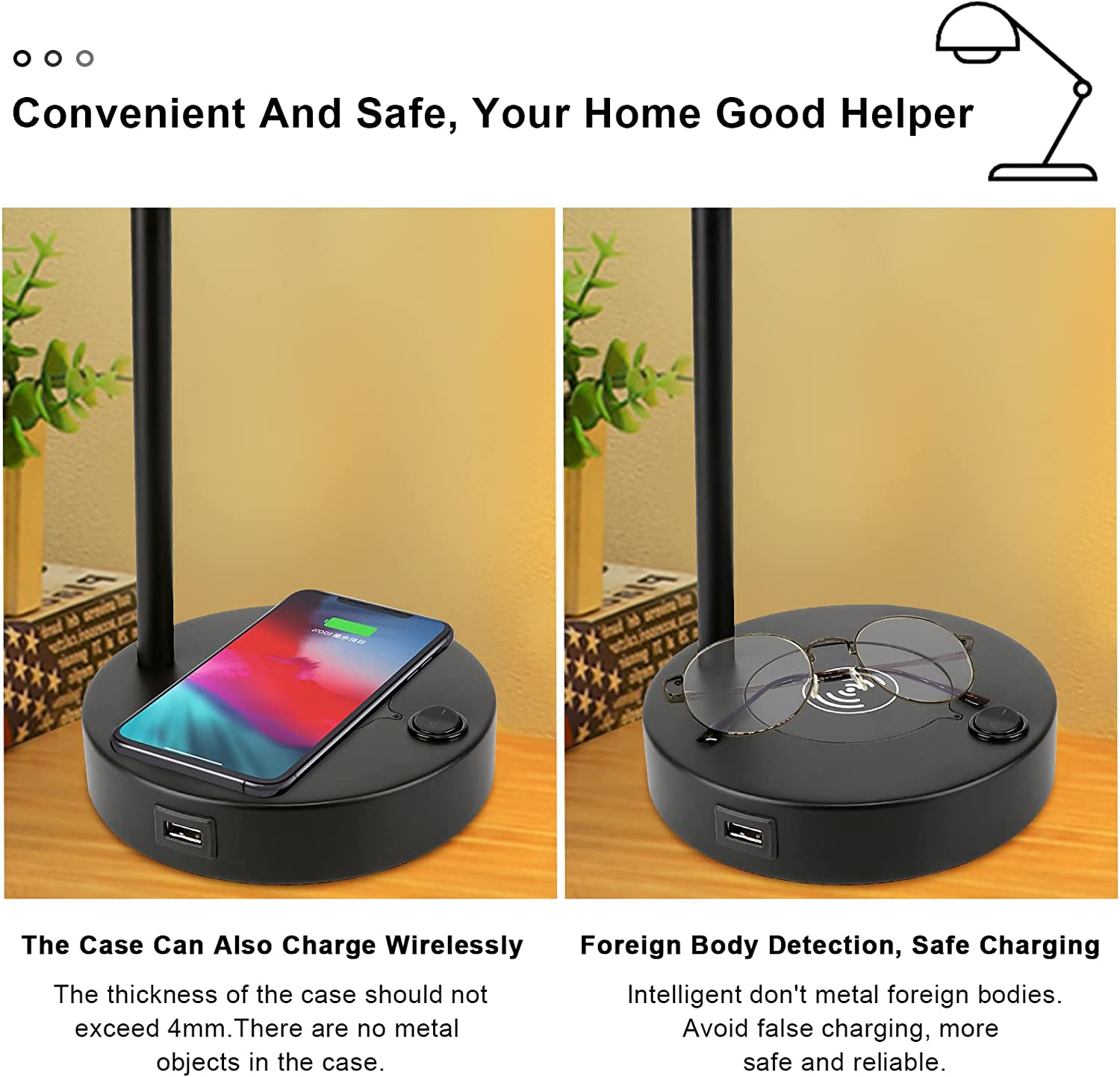 Depuley LED pöytä- ja pöytävalaisin langattomalla laturilla ja yhdellä USB-latausportilla, silitysrauta ja säädettävä muotoilu, silmiä hoitava yövalaisin olohuoneen makuuhuoneen lukutoimiston opiskelu