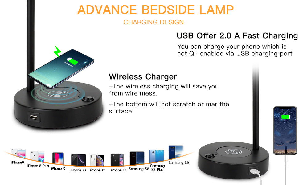- ✨【EDVANCE YÖVALAISIN LATAUSSUUNNITELMA】5V/2.4A USB tarjoaa 2.0A pikalatauksen + 10W langaton lataus, mahtava monitoiminen musta yöpöytälamppu kotiisi. (USB-porttia voidaan käyttää, kun valo on päällä tai pois päältä.)