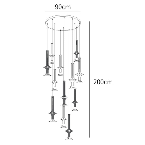 Useampien Wonder-lamppujen yhdistäminen eri mitoilla, viimeistelyillä ja korkeuksilla on hämmästyttävää, sillä borosilikaattilasin valoisa kauneus, jolla jokainen yksittäinen sauva valmistetaan, läpinäkyvänä tai savuviimeistelynä.