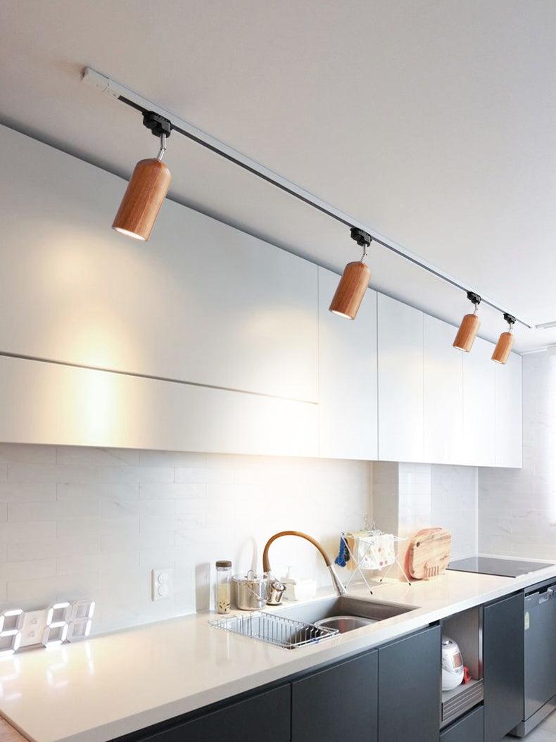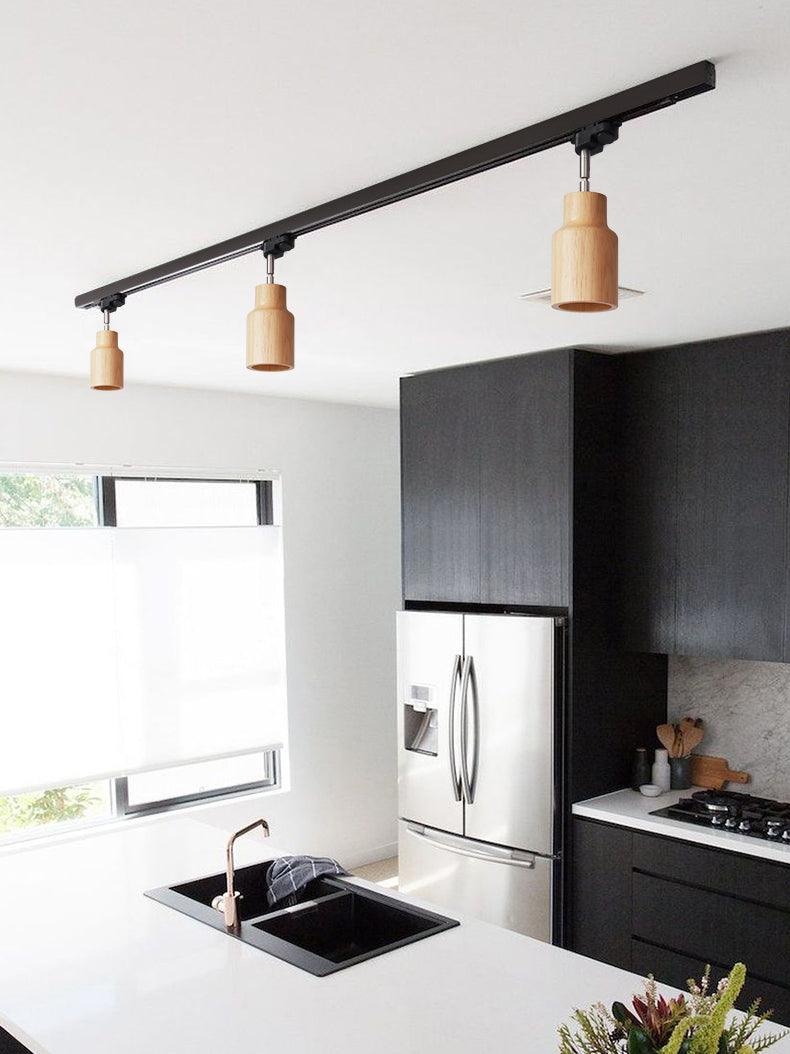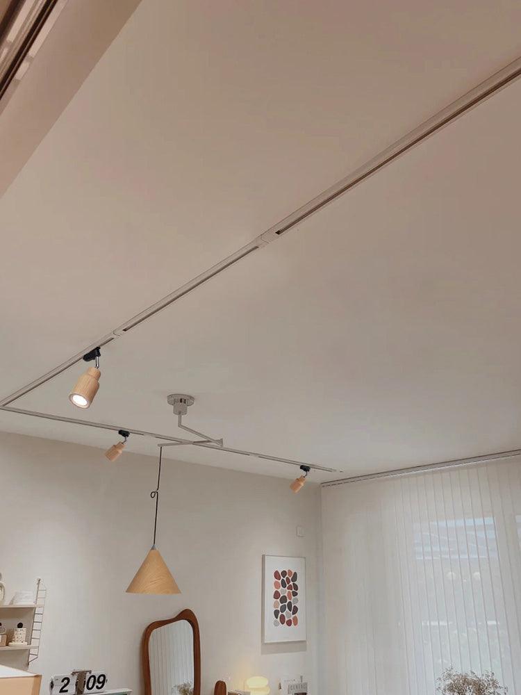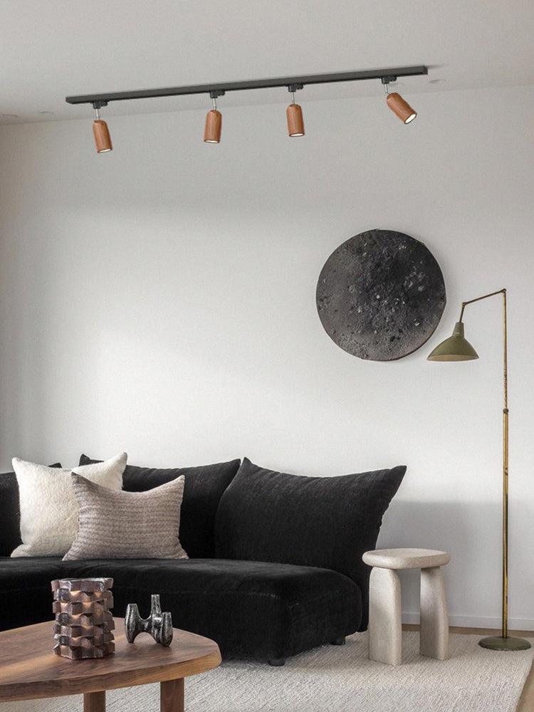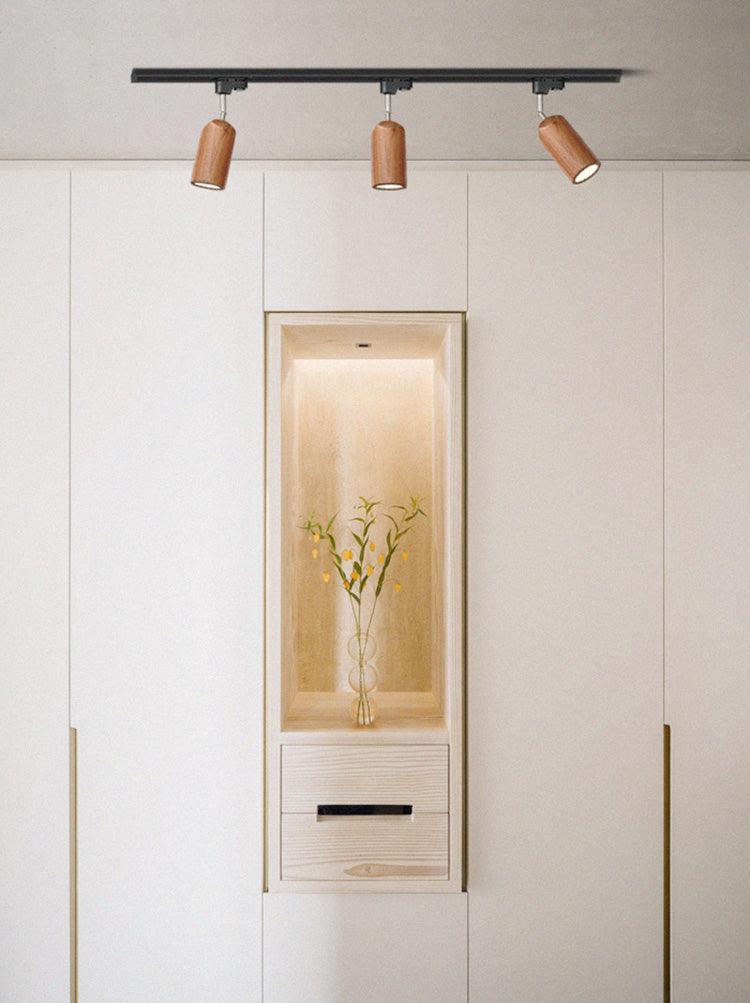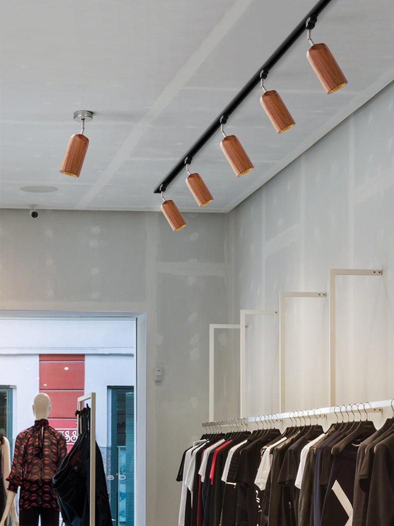 Tässä modernissa teollisuusteräksisessä kiskossa on säädettävät valopäät, jotka tarjoavat maksimaalista joustavuutta. Puinen katos lisää viehättävää ja omaperäistä ilmettä tähän hienostuneeseen ja hienostuneeseen valaistukseen. Kattovalaisin voidaan muuntaa seinävalaisimeksi. Tämä toimiva taideteos voi ehdottomasti olla huoneesi ilme.