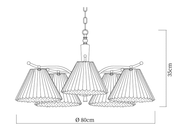 Tämä ryppyinen kattokruunu on täydellinen lisä nykyaikaiseen kotisi sisustukseen. Sen vaikuttavat kaarevat varret ja minimalistiset yksityiskohdat luovat tyylikkään ja hienostuneen siluetin, ja sen valkoinen laskostettu lampunvarjostin lisää täydellisen viimeistelyn. Tästä kattokruunusta tulee varmasti tilasi keskipiste.