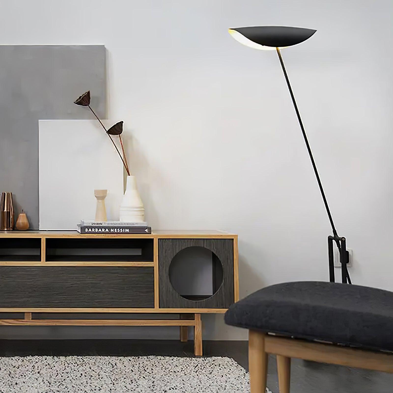 Tiedot Materiaali: metalli, rauta, ruostumaton teräs. Valonlähde: Integroitu LED Kelvin-alue: lämmin valo (3000K), neutraali valo (4500K), viileä valo (6000K) Teho: ~15W Jännite: AC 110-240V Asennus: Floor Ympäristö: Sisätilat Kosteudenkestävyys: IP 20 Kosteusluokitus, ei vedenpitävä, vain sisäkäyttöön. Finishes: Musta Lampunvarjostimen väri: musta Ohjaustapa: Painikekytkin 59,1" johdot pistokekytkimillä. Certification: UL, ETL ja CE, SAA luettelossa.